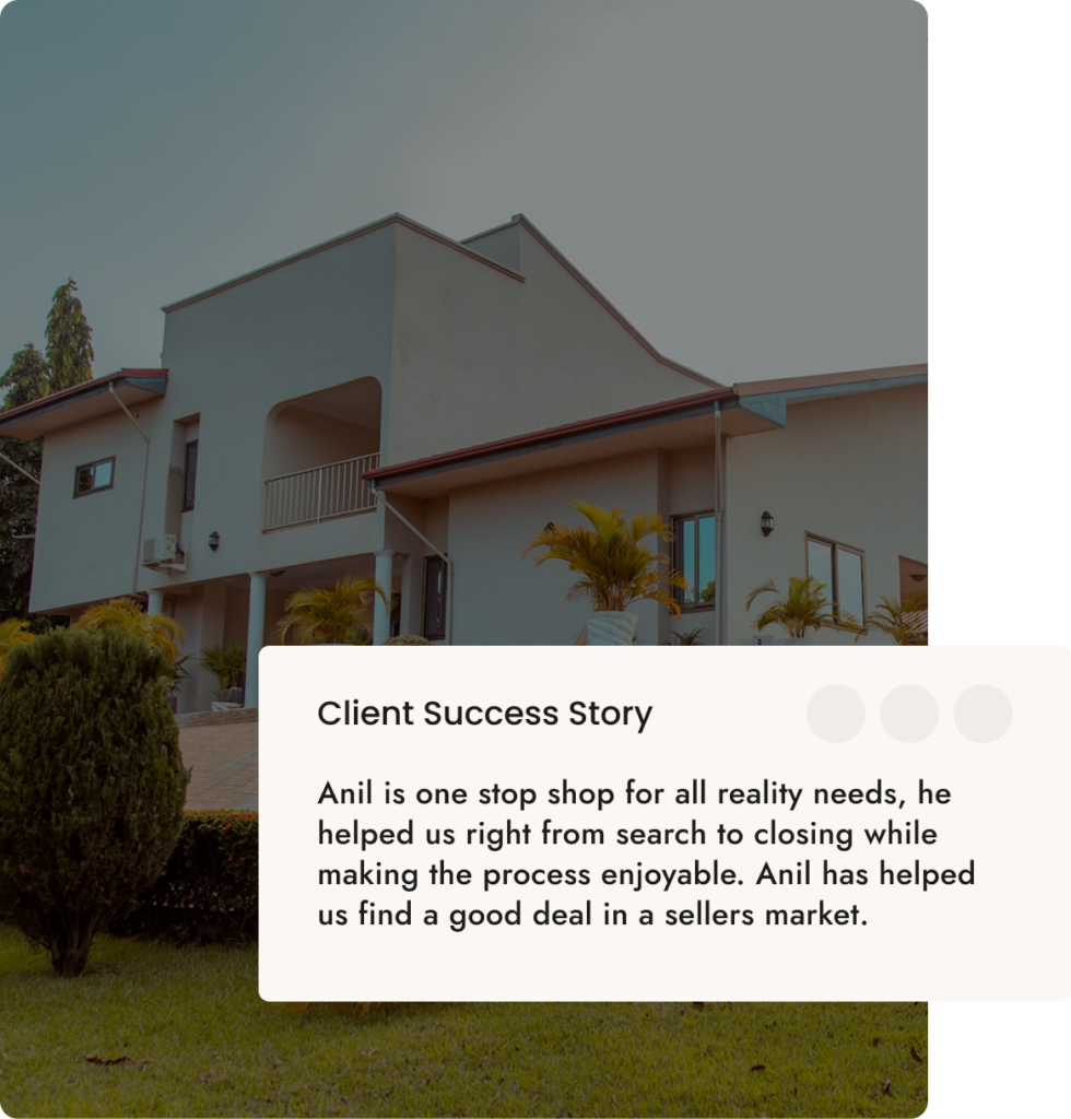 Anil is one stop shop for all reality needs, he helped us right from search to closing while making the process enjoyable. Anil has helped us find a good deal in a sellers market.